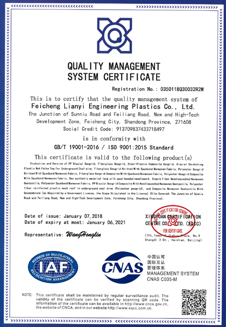 山東肥城聯(lián)誼工程塑料有限公司位于馳名中外的“中國(guó)桃鄉(xiāng)”——肥城,周邊風(fēng)景秀麗,環(huán)境優(yōu)雅,公司現(xiàn)有員工500余人,其中具有高中級(jí)以上職稱(chēng)的專(zhuān)業(yè)技術(shù)人員86名,擁有德國(guó)卡爾邁耶 (高速“拉舍爾”經(jīng)編機(jī)、瑪里莫)多軸向織機(jī)、道尼爾織機(jī),及兩條雙向格柵生產(chǎn)線(xiàn),兩條單向格柵生產(chǎn)線(xiàn),多條土工格室生產(chǎn)線(xiàn)。